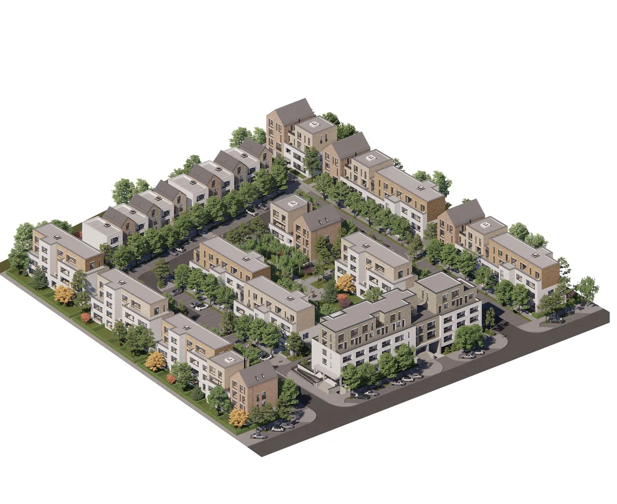 Therefore, our vision for peri-urban living remains an exception in the area: a neighborhood with low-rise buildings, with airy spaces between the buildings, well-sized interiors to ensure dignified living, vegetation buffers along the street and lot boundaries, public spaces that emphasize resident interaction and community life, territorial connections, and transparency of the urban fabric.