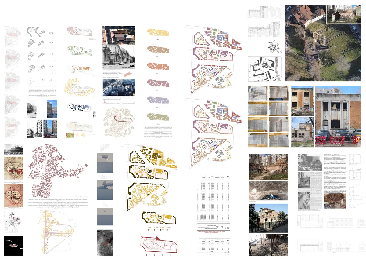 The result is an area of tension between the two types of urban fabric: historic and new. Urban spaces that once had connections in the fabric have now become residual fragments, and important urban places and artifacts are enclosed by the context of the blocks. The blocks, with their ornate facades towards the boulevards, turn their backs to the historic fabric, generating an unhealthy urban landscape towards the 'back' - towards the historic fabric.