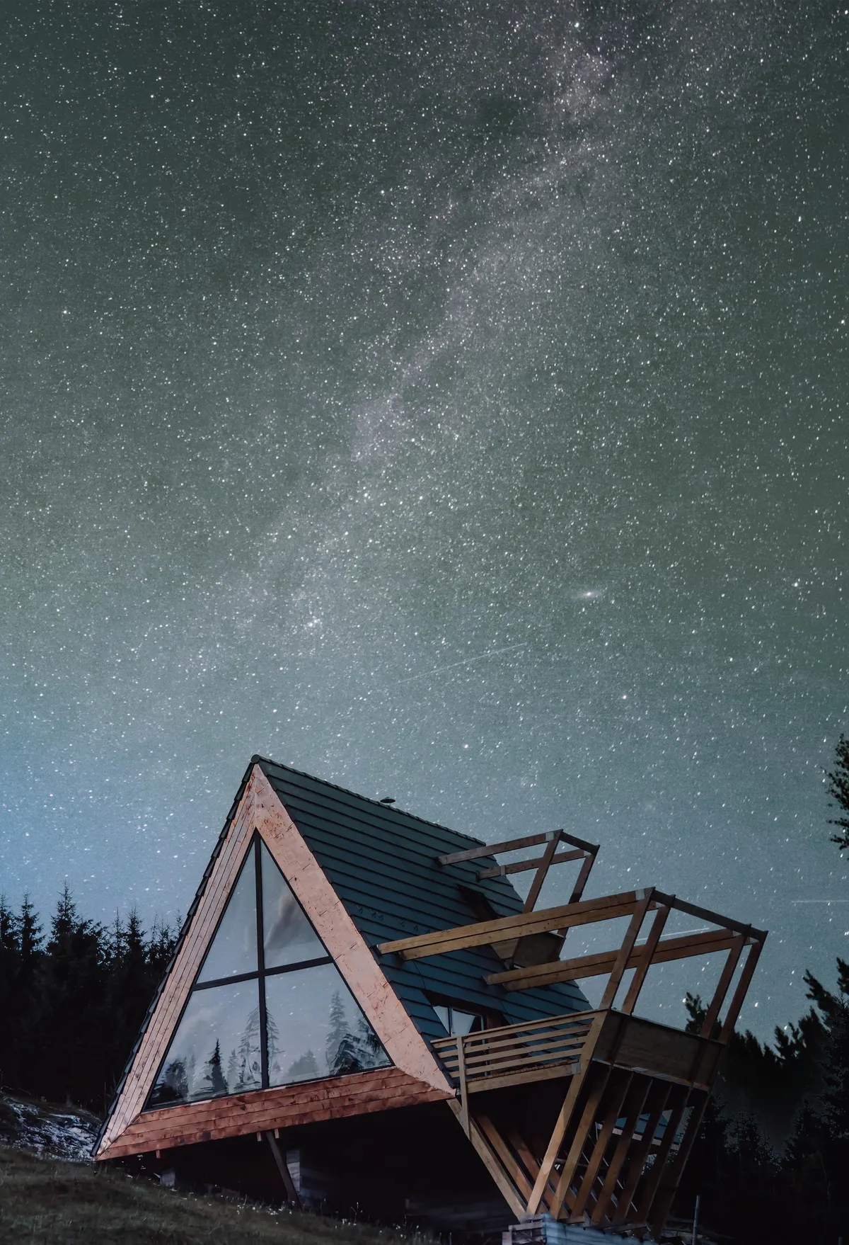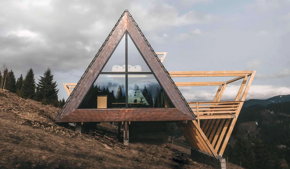 The house concept is generated by two essential theme features: the recurrent form management of type "A" timber frame constructions met in the mountain areas, clients’ requirement, and the open, transparent expression, requirement due to site exceptional quality. Responding to these two needs, a simple, mysterious yet highlighted construction was designed, a mediator between interior and exterior spaces.