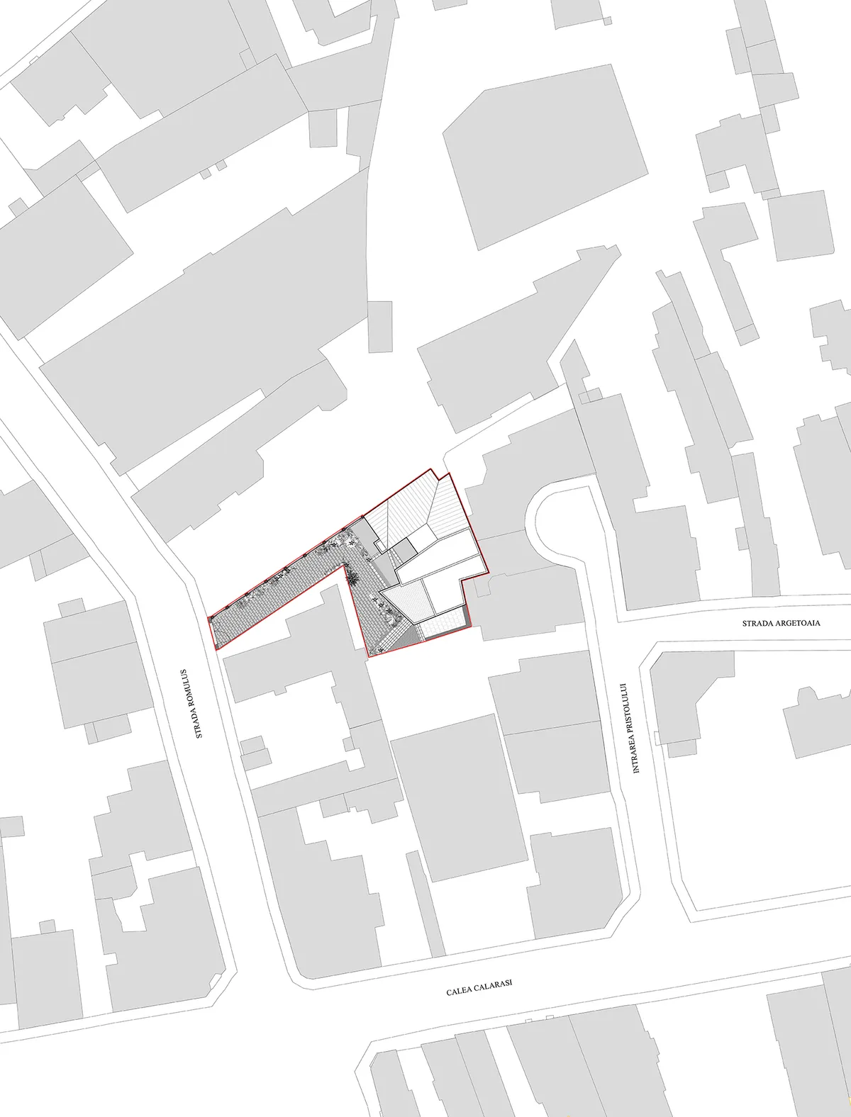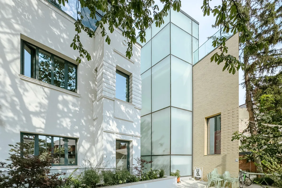In the vicinity of the former Carriage Factory, within a protected area, the office building with bistro space at 23 Romulus Street was developed through the expansion and conversion of the interwar Mazil residence. The project aimed to integrate a public destination building in a non-intrusive manner, considering both the urban context and the existing structure.