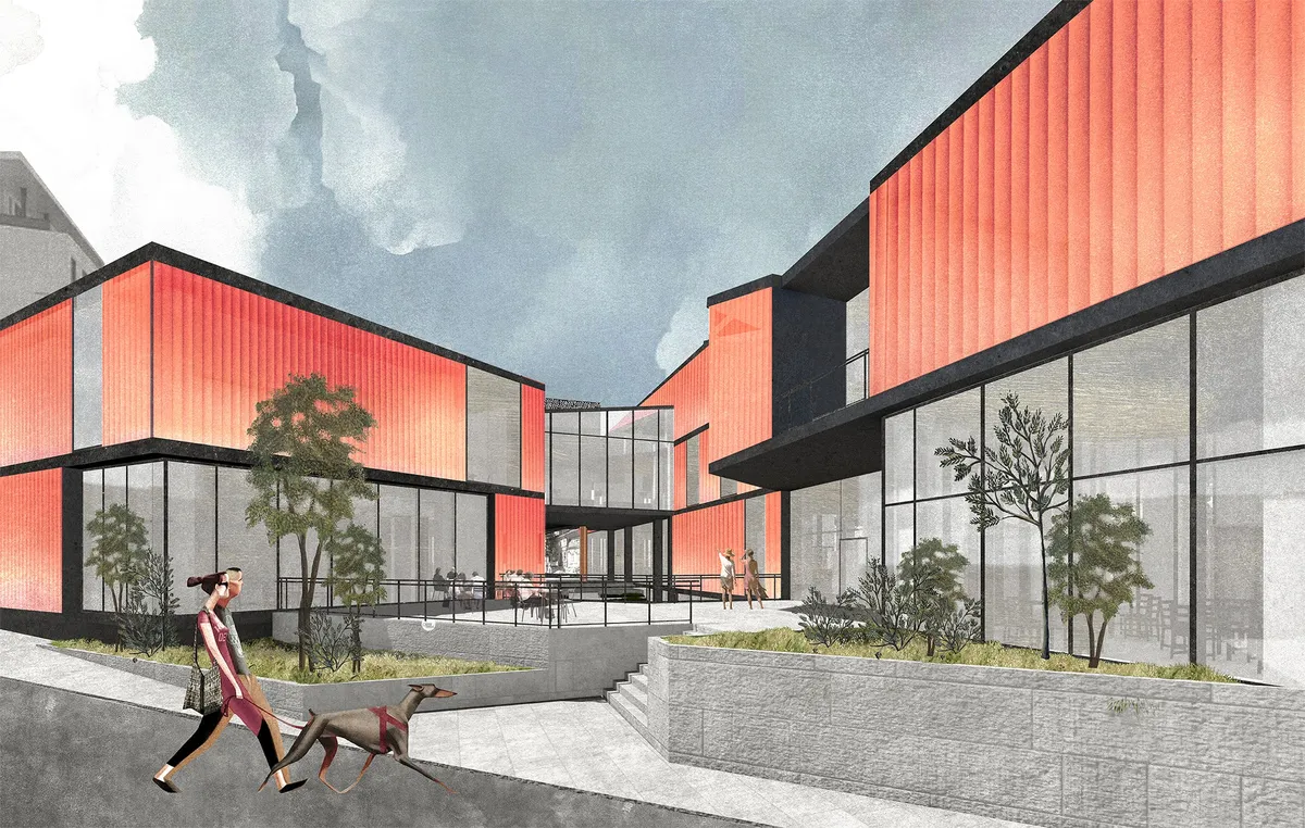 The volumetric concept is guided by three design directions, the first being the creation of sunken courtyards to highlight the Hunchiar Mosque. The public courtyards are located at the basement level but are directly connected to the public space on the ground floor through terraces, acting as amphitheaters for exhibitions or outdoor performances. Other directions include completing the frontage to concentrate activities towards these courtyards and breaking up the volumes and frontages at ground level to maintain the continuity of pedestrian pathways activated by public functions.