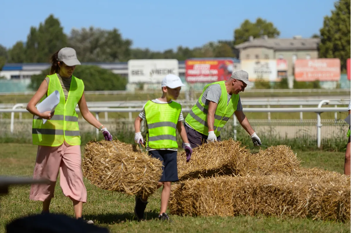 The Hay Maze pavilion is a temporary structure serving as a maze, gathering place, and exhibition space. The varying wall heights accommodate users of all ages, with low walls for sitting or climbing and high walls for the maze function. Integrated into both the urban and natural environment of the Belgrade Hippodrome, it uses ecological materials and color contrast to stand out on the green meadow. The Hay Maze is a modular, temporary structure that leaves no trace after removal. It is spatially aligned with the context of its location, following the longitudinal axis of the site, with entrances and exits extending existing user routes.