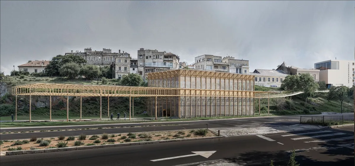 The proposed project aims to create a visiting route that includes the protection of the ancient ruins of the Lentiarion (Roman Baths) in the Constanța Peninsula and the construction of a new building with functions related to archaeology, which will complete the built environment on the eastern cliff. This route connects four main attractions: two existing ones (the National History and Archaeology Museum and the Roman Mosaic Edifice Museum) and two proposed ones (a protective shelter for the Roman Baths ruins and the Lentiarion Gallery building).
