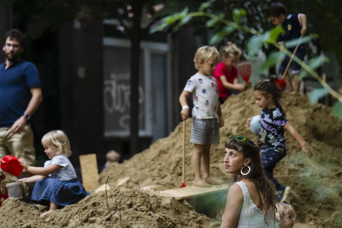 During the street actions, the exhibition elements were transformed into play equipment. The highlight of the Barát Street site was a large sand hill in the middle of the street, inviting children and adults alike to play. Throughout the project, the creators were available for discussions with the public, fostering professional dialogue and community engagement.