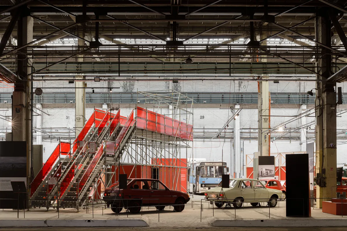 The Museum of Transport invited us to design the temporary exhibition on the history of transport, following the collaborative work of the "The Cycling Shift" exhibition last year. The location was the same, the Northern Vehicle Repair Diesel Hall in Budapest, representing a significant industrial heritage and undergoing renovation for cultural purposes.