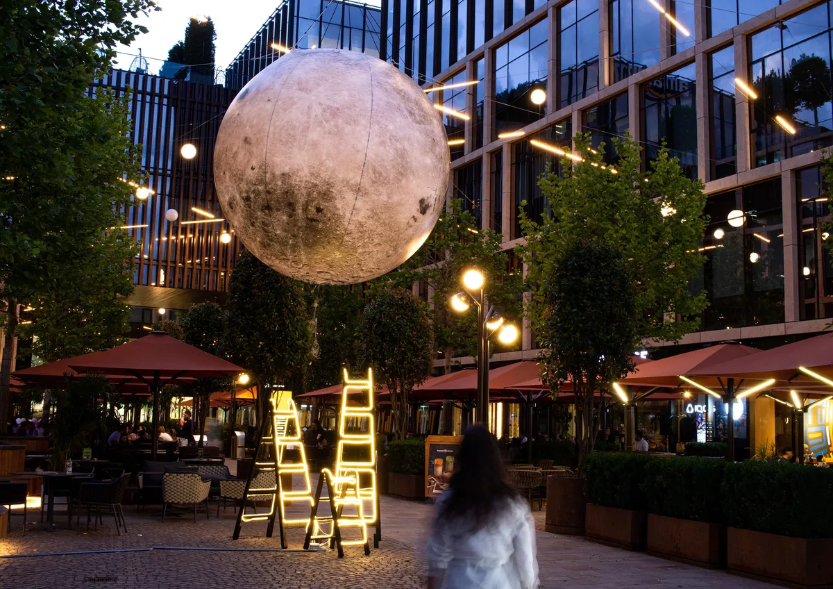 We were inspired by the installation Museum of the Moon by the british artist Luke Jerram, which centers around the moon viewed as the cultural reflection of our society, showing the beliefs and ideas of the people around the world. In contrast, we wanted to present another state in which an oversized object appearing as the moon, would provoke a reflection on the times we live in.