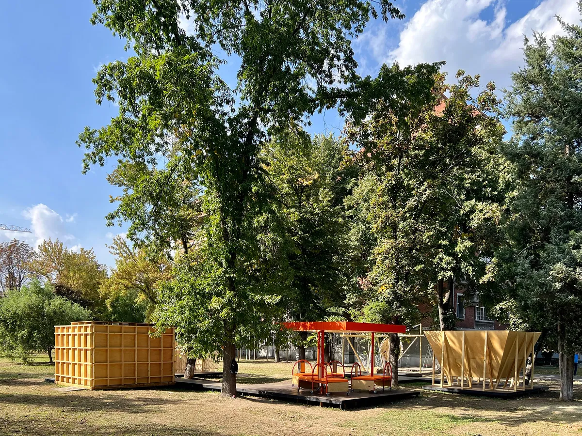 The FAST Pavilion represents the outcome of collaborative workshops between professors and students from the five architecture schools. These workshops, held in Timișoara, aimed to co-design and co-create the pavilion, inspired by the theme of the UIA 2023 Congress in Copenhagen and the 17 Sustainable Development Goals (SDGs). This initiative, launched by the five schools and the National Order of Architects of Romania, is part of the first edition of FAST, which brings together architectural education and professional practice.