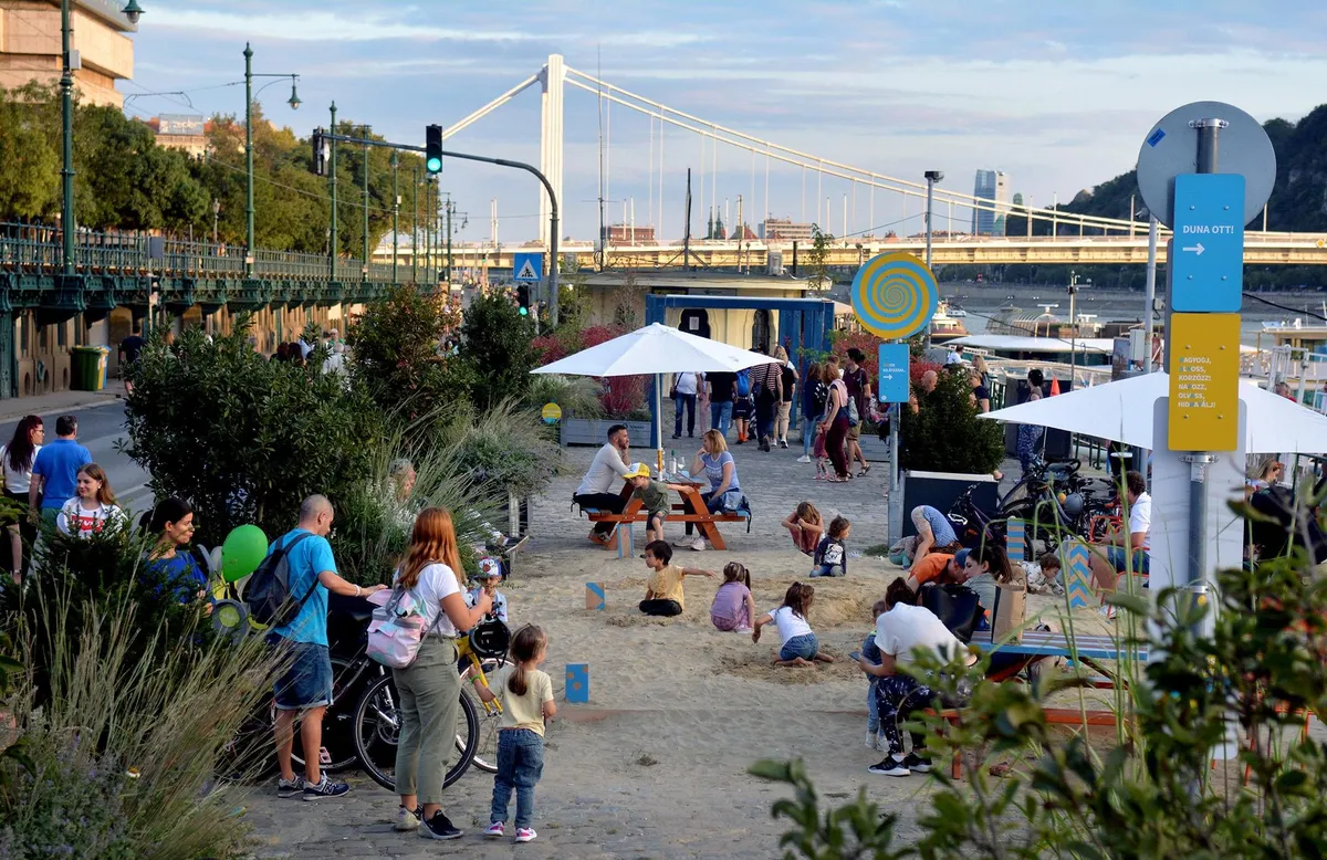 After the pilot ciclovia weekends in 2020 and the Place Making Days in 2022, in 2023 the Valyo has developed a spatial concept and social programming for the Jane Haining Quay, the area between the Chain Bridge and Elisabeth Bridge on Pest side in Budapest, resulting into an average of 10.000 visitors a day between April and October 2023. The quay was free of traffic during the weekends and the area was also open to the public on weekdays for 20 consecutive days during the summer.