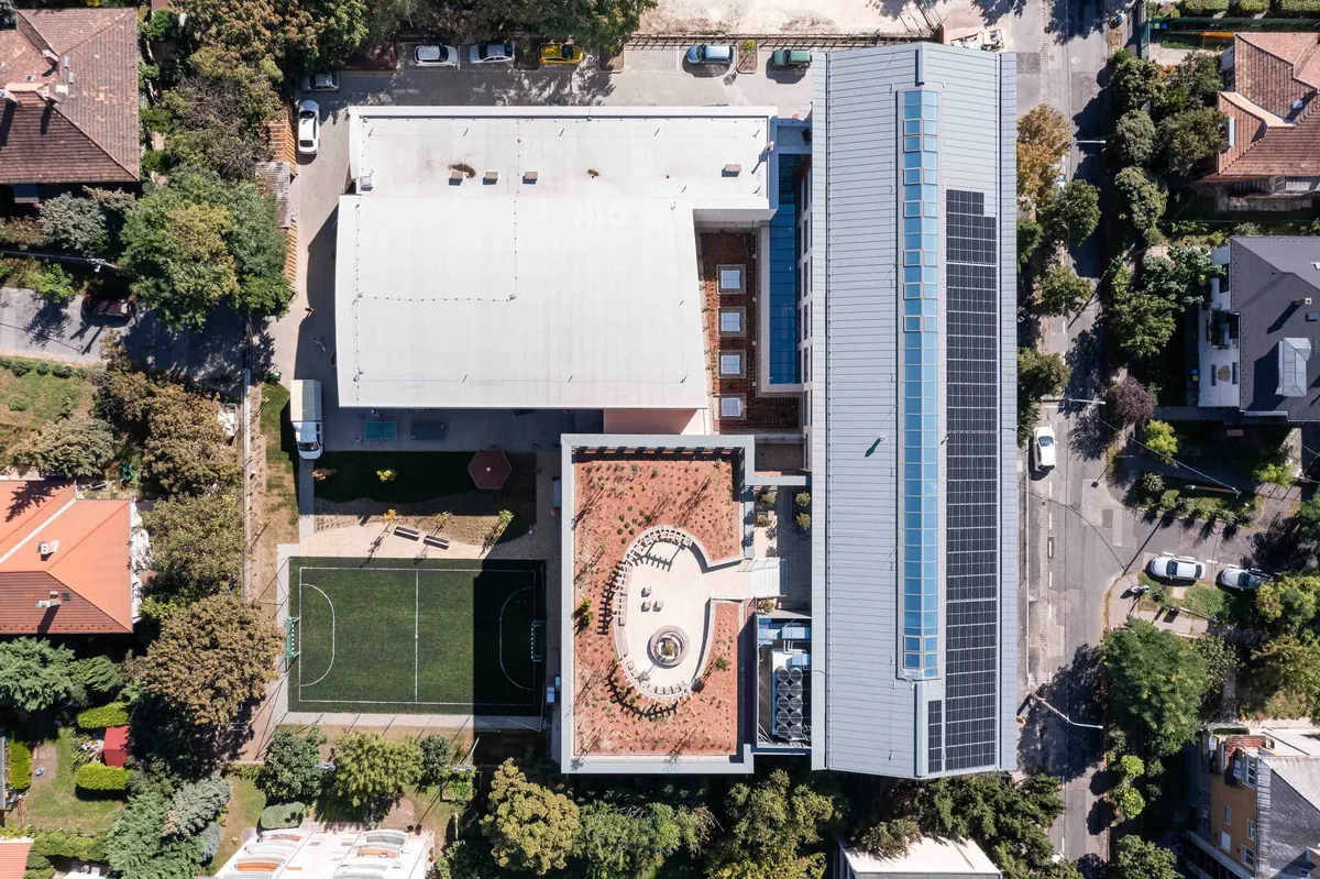 During the conversion, the addition of a lightweight attic-like structure in the flat-roofed part of the street and the addition of an inner courtyard create new spaces for the users, and the roof garden adds a new quality of life to everyday life. In addition to the complete thermal insulation and energy modernization of the building, the coverings, windows, sanitary facilities and electrical network will also be renewed. A solar panel supports the new systems on the south-west roof under the glass skylight.