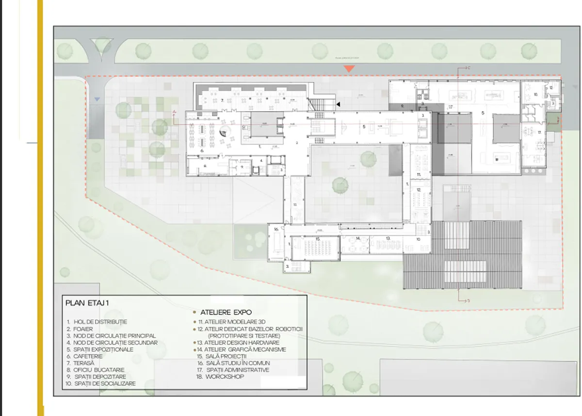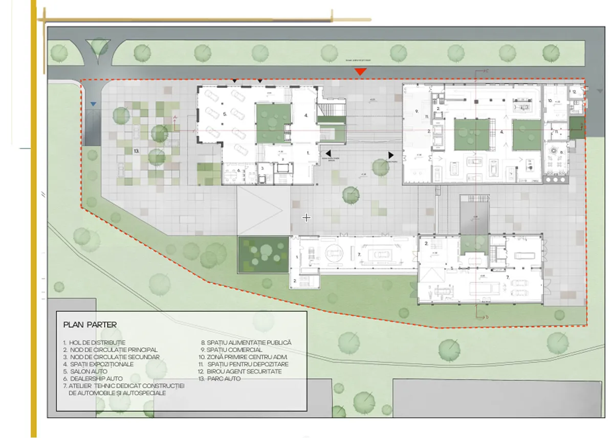 Orice fenomen izvorăste și continua într-un istoric. În acest sens, Centrul de creație al automobilului presupune re-vitalizare functional urbanistică a unei sub-zone industriale din Arad, prin apel la valentele memothenice ale arhitecturii. Miza e de-a prelua istoricul primei fabrici de automobile din România,„Marta" şi de-a oferi posibilitatea de-a crea în prezentul urbei prin conversia şi extinderea functională. Raportându-le la istoria locului şi la opinia comunităţii locale proiectul însumează următoarele categorii funcționale: 1.Spatii muzeale; 2.Spatii pentru studii tehnice. Scopul e de-a oferi spații auxiliare studenților şi pasionaților de inginerie; 3.Spatii pentru publicul larg: spatii expozitionale, alimentație publică şi amenajări. Principiul generator al complexului e unul care urmăreşte cele două axe majore prezente pe sit. Primul ax e cel principal, e vorba de axul care are drept capăt de perspectivă: turnul de apă. Cel de-a doilea ax leagă spațiile amenajate din cadrul amplasamentului cu cele din spatele facultății de inginerie, legând cele două spații verzi. La intersecția celor două axe se află incinta complexului care permite distribuirea către toate categoriile spațiale. Incinta e ridicată al nivelul superior al demi-solului existent al clădirilor istorice, pentru a facilita comunicarea spatială la nivelul parterului. Astfel intenția generală a spațiilor, pe lângă particularitățile destinațiilor asumate, e de-a se deschide dar şi de-a directiona.