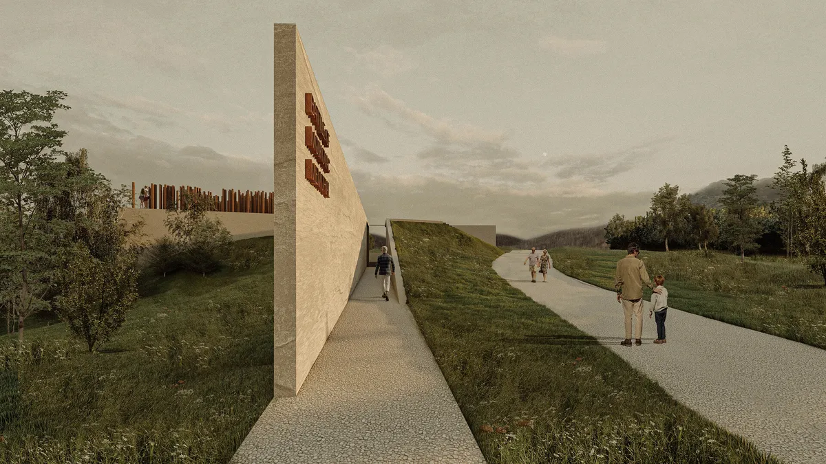 Scopul nostru a fost de la bun început să capturăm esența sacrificiului armatei muntenegrene în luptă. Procesul de design a fost profund înrădăcinat în dialectica acestui eveniment istoric: directiva militară tangibilă de a menține linia și de a câștiga timp pentru aliați contrasta cu actul monumental de sacrificiu și dramaturgiile umane ulterioare. Am urmărit să transmitem rezistența în cea mai pură formă a ei. Simultan, peisajul natural - un deal ondulat, parțial împădurit - cerea un contrast puternic: o formă definitivă stând hotărâtă împotriva fundalului organic, încarnând rezistența și hotărârea. Explorările noastre formale s-au învârtit în jurul acestui joc de contrast. Funcția memorialului a implicat inherent conceptul de timp, reprezentând o călătorie liniară, un pelerinaj. Comemorarea înseamnă în esență procesiune. Am căutat să reinterpretăm și să integrăm elemente care evocau experiențele soldaților în tranșee și reperele care îi îndrumau către pozițiile inamice. Acest concept a influențat expoziția permanentă, pe care am conceput-o ca pe un traseu, reflectând călătoria soldaților. De asemenea, traversarea exterioară a clădirii a fost concepută ca o ascensiune către punctele de observare de pe terasa memorialului, unde soldații din oțel COR-TEN stau într-un tribut solemn.Respectând terenul natural, arhitectura urmează cu grație contururile existente, transformând înclinarea sitului într-un design funcțional și simbolic. Clădirea se desfășoară pe două nivele, armonizându-se cu peisajul natural. Parterul, cu două intrări reminiscente ale liniilor de tranșee, este împărțit în două volume distincte. Volumul principal cuprinde zona de primire, galeria permanentă dedicată Bătăliei de la Mojkovac, facilități sanitare și birouri esențiale pentru personal și curatorii. Acest volum oferă, de asemenea, acces la sala multifuncțională de pe nivelul inferior. Volumul secundar de la parter găzduiește o bibliotecă tematică, un bufet și un magazin de suveniruri, toate deschizându-se către o terasă spațioasă. Nivelul inferior este dedicat unei zone multifuncționale care oferă vederi panoramice exterioare și acces la platforma inferioară. Acest nivel include, de asemenea, o zonă de depozitare și spații tehnice. Terasa clădirii este inima memorialului, accesibilă de pe traseul principal și prezentând o instalare densă de elemente metalice de corten, simbolizând corpul de armată.