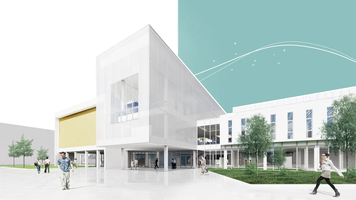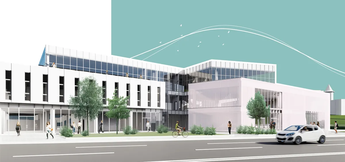 Compoziția volumetrică se rezumă la relaționarea unor volume simple, prismatice într-un mod cât mai dinamic. Fațadele transparente și translucide au rolul de a scoate în evidență corpurile conservate, ele devenind un ecran de proiecție al contextului, iar impactul intervenției capătă o notă cât mai subtilă.