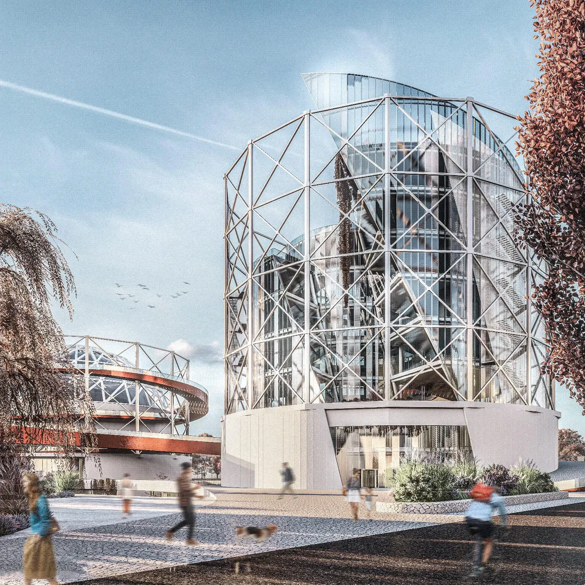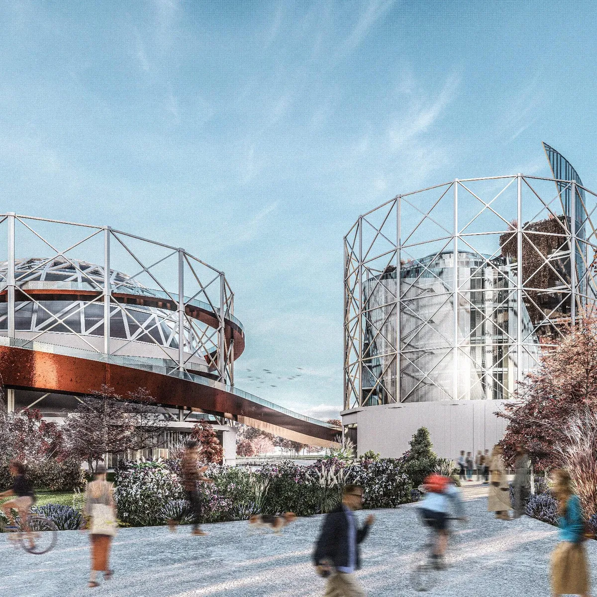 Aceste structuri metalice, care odinioară serveau ca rezervoare pentru gazul natural, integrează un spațiu multifunctional și creativ. Acestea nu numai că își păstrează amprenta istorică, dar adaugă și o nouă dimensiune culturală și socială, contribuind la redefinirea identității spațiului.