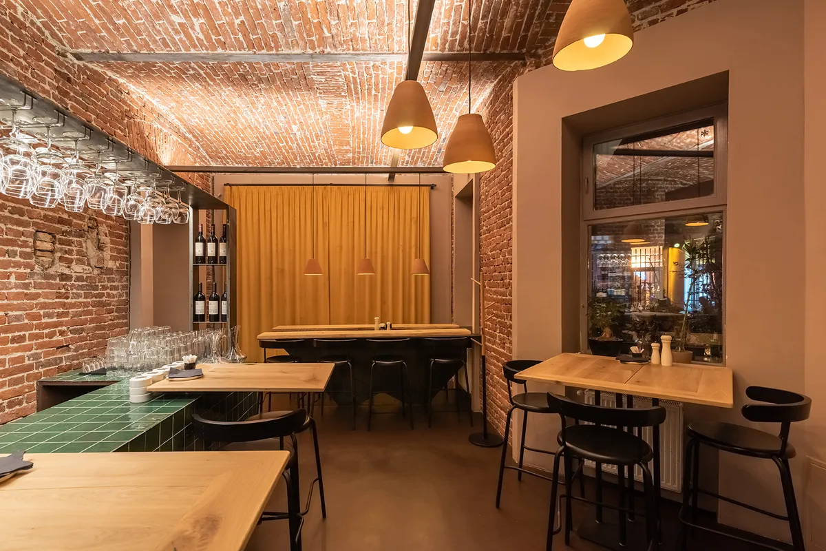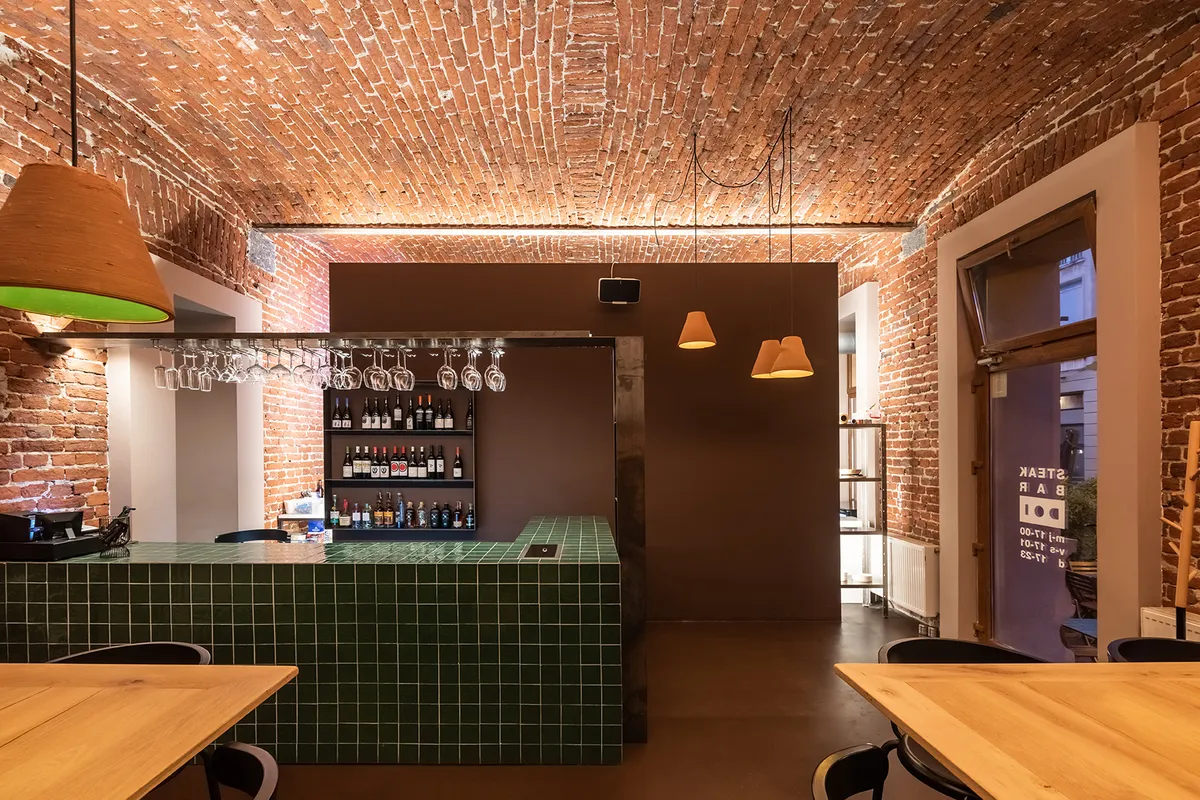 Proiectul DOI ilustrează una dintre abordările preferate ale biroului nostru în designul interior: utilizarea materialelor în forma lor autentică, atmosfera interioară obținută prin punerea în valoare a elementelor arhitecturale care compun spațiul, controlul mișcării și a perspectivelor interioare prin gesturi la scara spațiului, lipsa încărcării vizuale și mai ales gestionarea iluminatului, atât natural, cât și artificial. Proiectul este o mărturie a puterii simplității. Prin eliminarea ”învelitorii interioare” din plăci de gips-carton, am dezvăluit textura zidăriei originale. Atmosfera interioară este obținută prin textura de cărămidă, iluminat și plasarea atentă a unor elemente simple dar la scara spașiului. Barul însuși, un punct central mono-material, a fost conceput să fie atât un punct focal funcțional, cât și arhitectural. Utilizarea unei palete de materiale reduse asigură că fiecare element funcționează armonios cu cărămida expusă. Interiorul sofisticat, dar modest, reflectă credința noastră că reducerea unui spațiu la câteva elemente esențiale poate crea o experiență rafinată și necomplică. Caracteristicile principale includ două planuri verticale care nu ating pereții sau bolțile de cărămidă, separând zona funcțională de cea destinată clienților. Barul, compus din două volume mono-material, servește ca punct central. Pardoseala, cu culoarea sa intensă, unifică spațiul. Elementele decorative, precum abajururile ceramice, o perdea și o nișă de culoare muștar, îmbogățesc paleta de culori și scara volume din spațiu. Strategia noastră de iluminat evită corpurile convenționale, utilizând în schimb surse ascunse care proiectează lumina pe bolțile de cărămidă, accentuând frumusețea arhitecturală a spațiului și creând o atmosferă caldă și primitoare. Această abordare permite spațiului să se simtă special fără a impune gesturi de design copleșitoare. Proiectul a rezultat dintr-un dialog unic cu clientul, ale cărui contribuții creative au depășit simpla colaborare. Implicarea activă a acestuia a îmbogățit abordarea noastră, conducând la un design care reflectă autentic spiritul locului. și oferă beneficii practice în utilizare. Prin sublinierea eleganței și simplității, am dorit să oferim utilizatorilor un spațiu care să se simtă distinct și confortabil, invitându-i să se bucure de atmosferă fără distrageri.